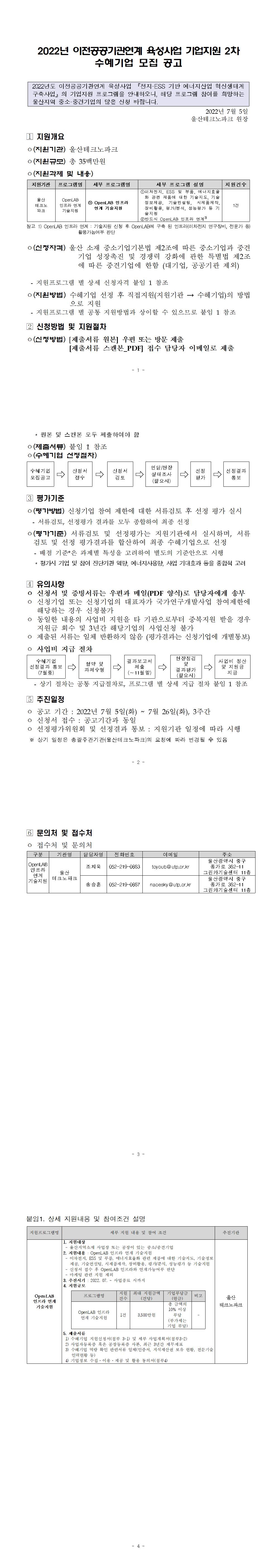 | 첨부파일 | _공고문_이전공공기관연계_육성사업_기업지원사업_공고문_2차_배포용.hwp (80.0K) 첨부_3-1._신청서_양식__울산테크노파크.hwp (42.5K) 첨부_3-2._세부_사업계획서_양식__울산테크노파크.hwp (74.5K) 첨부_4._기업정보_수집이용제공_및_활용_동의서.hwp (64.0K) | ||||