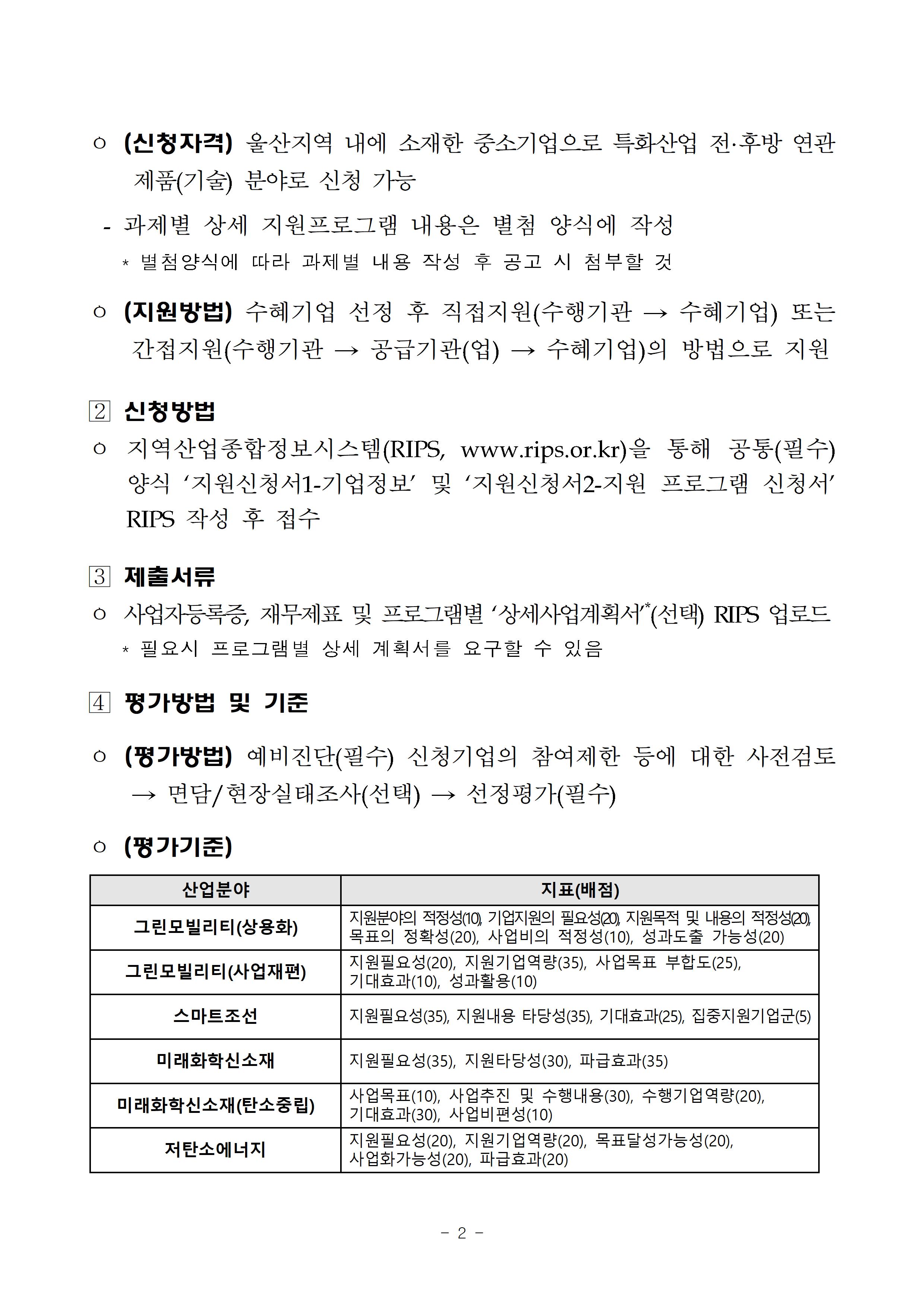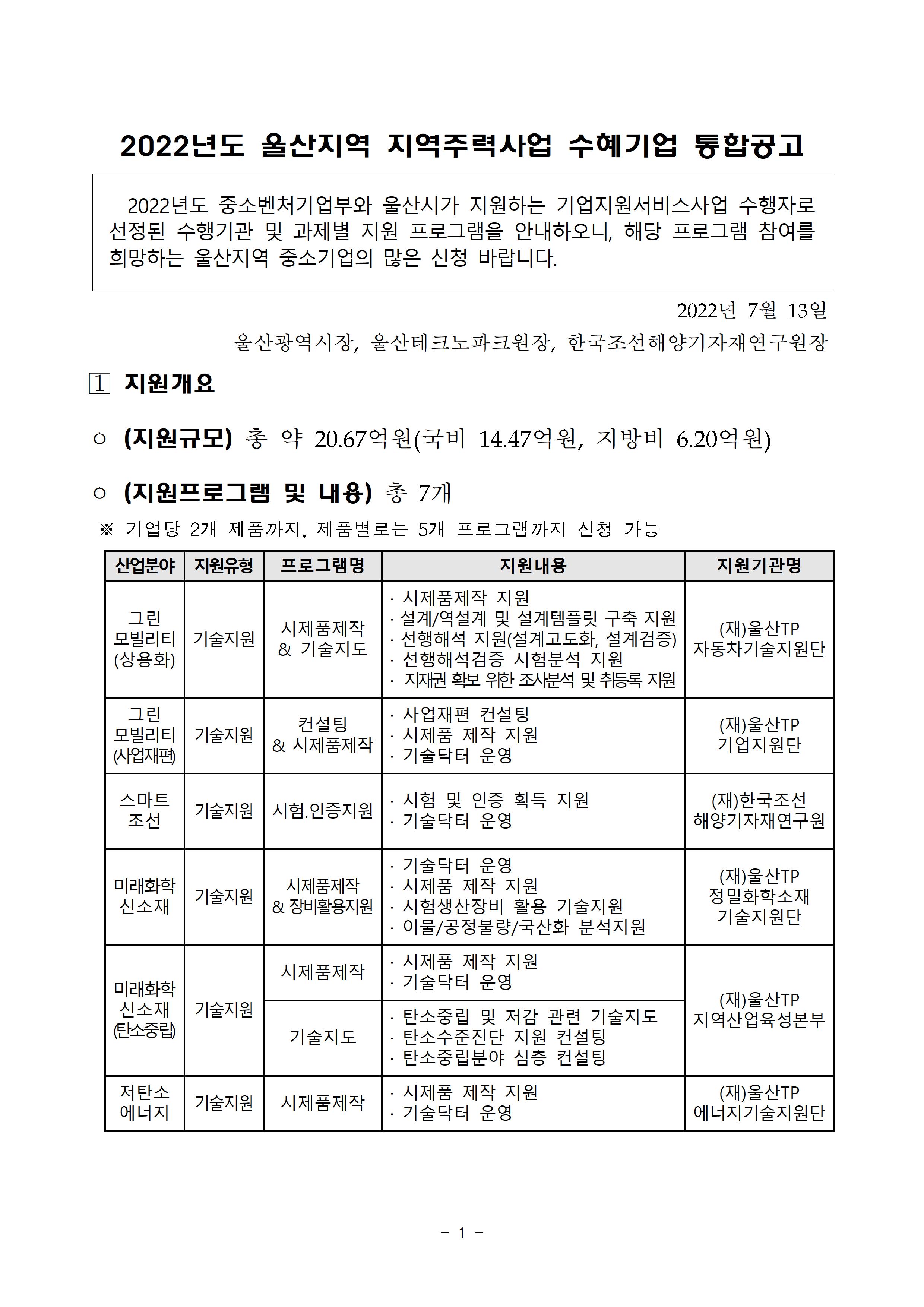 | 제목 | 2022년도 울산지역 지역주력사업 기업지원사업 수혜기업 2차 통합공고 | ||||
