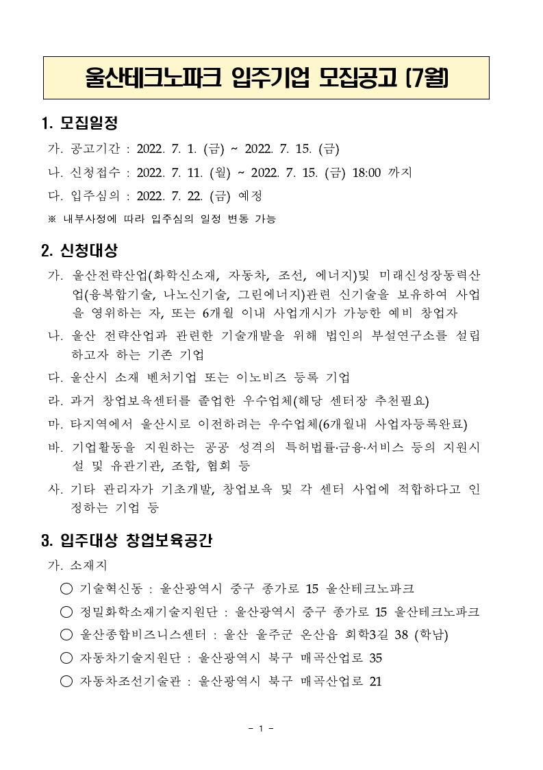 (우)44412 울산광역시 중구 종가로 15(다운동) 울산테크노파크 본부동
