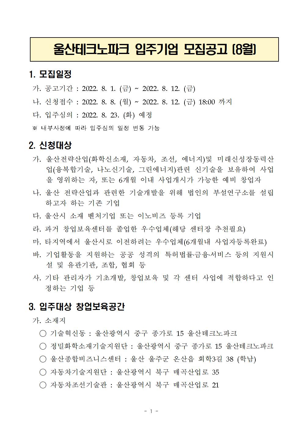 (우)44412 울산광역시 중구 종가로 15(다운동) 울산테크노파크 본부동