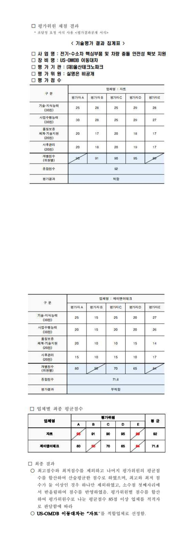 US-OMDB 이동대차 제안서 평가결과