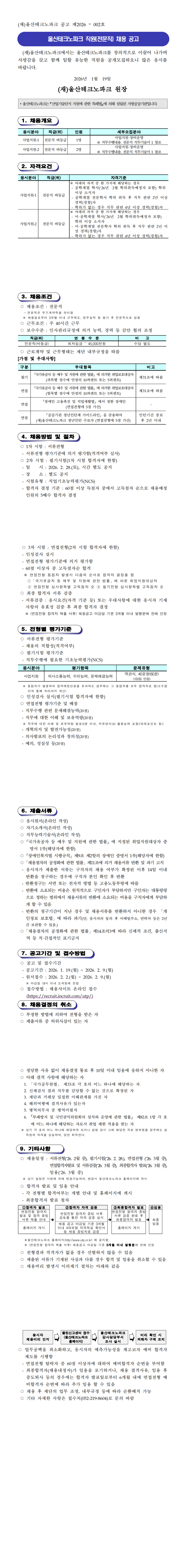 울산테크노파크 직원(전문직) 채용 공고(제2026-002호)