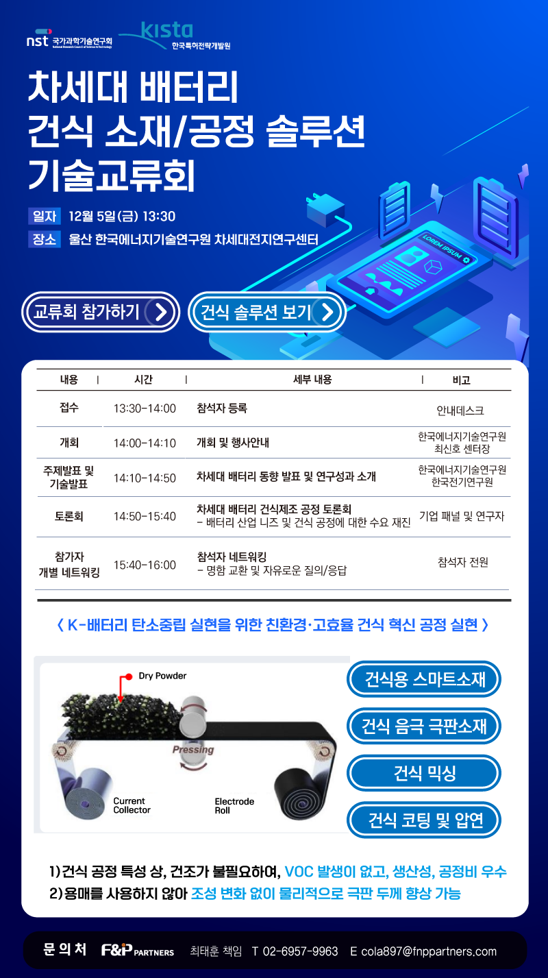 [국가과학기술연구회] 차세대 배터리 건식 소재/공정 솔루션 기술교류회