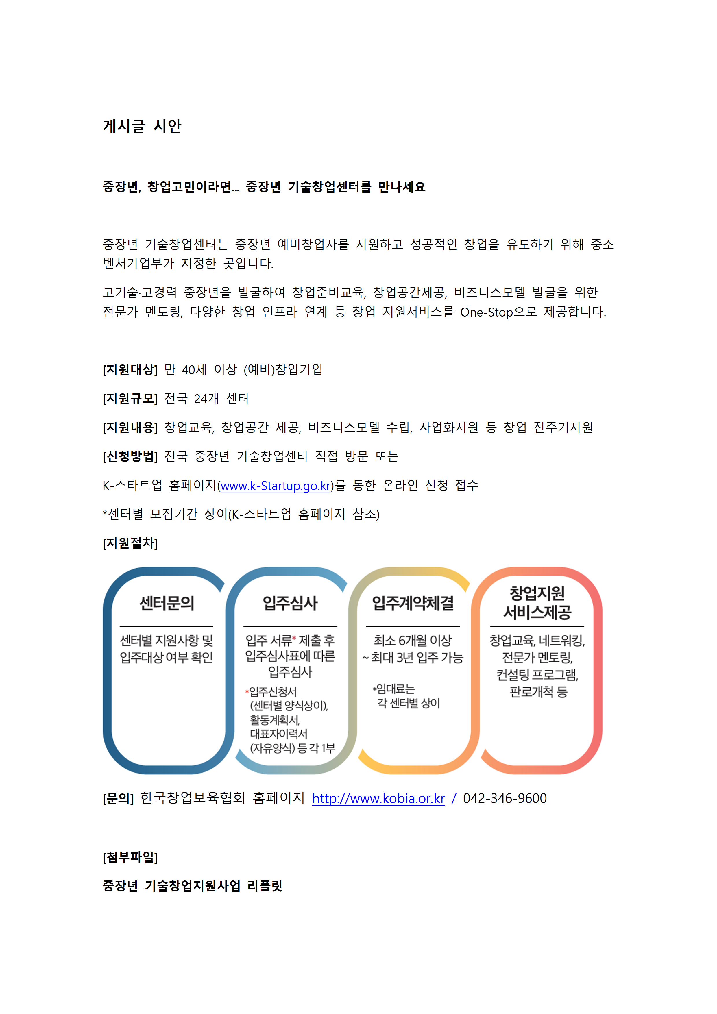 [(사)한국창업보육협회] 중소벤처기업부 중장년 기술 창업 지원 정책 안내