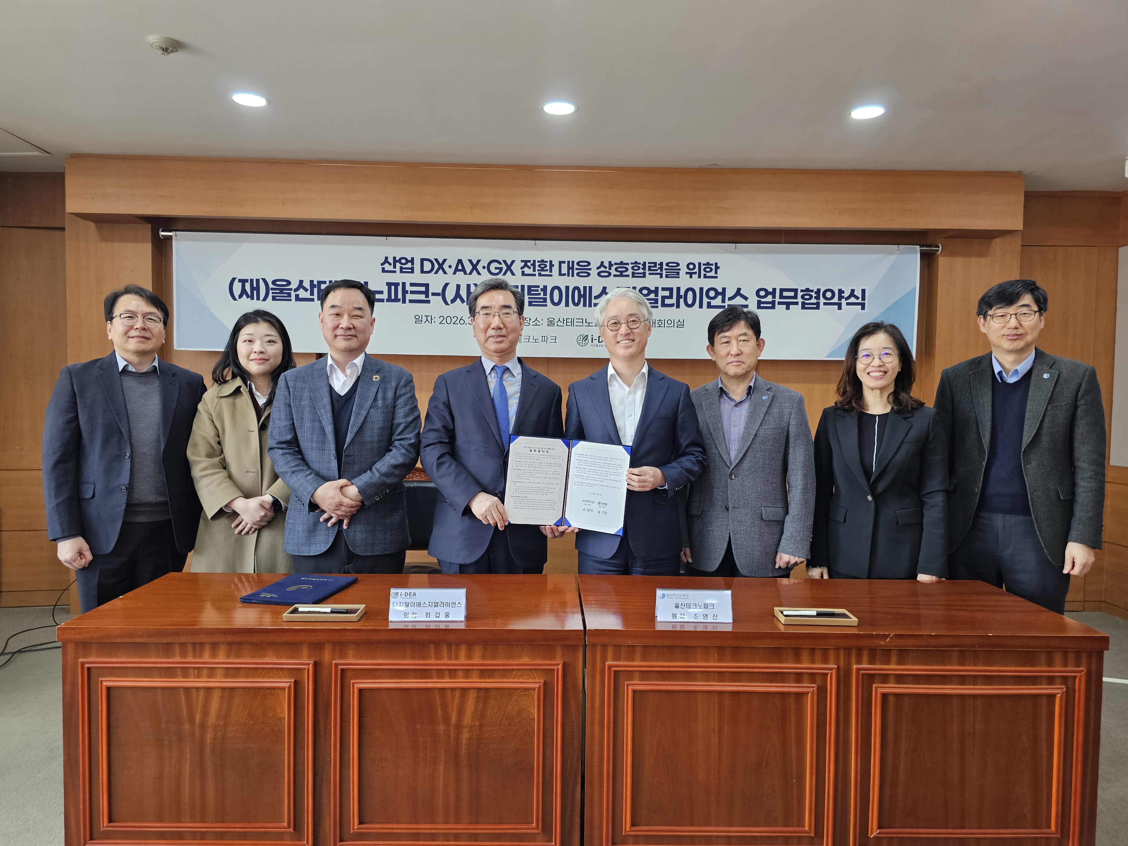 울산테크노파크(원장 조영신, 이하 울산TP)는 4일(수) (사)디지털이에스지얼라이언스(회장 최갑홍, 이하 i-DEA)와 산업 디지털·AI·그린 전환 대응을 위한 업무협약을 체결했다고 밝혔다.