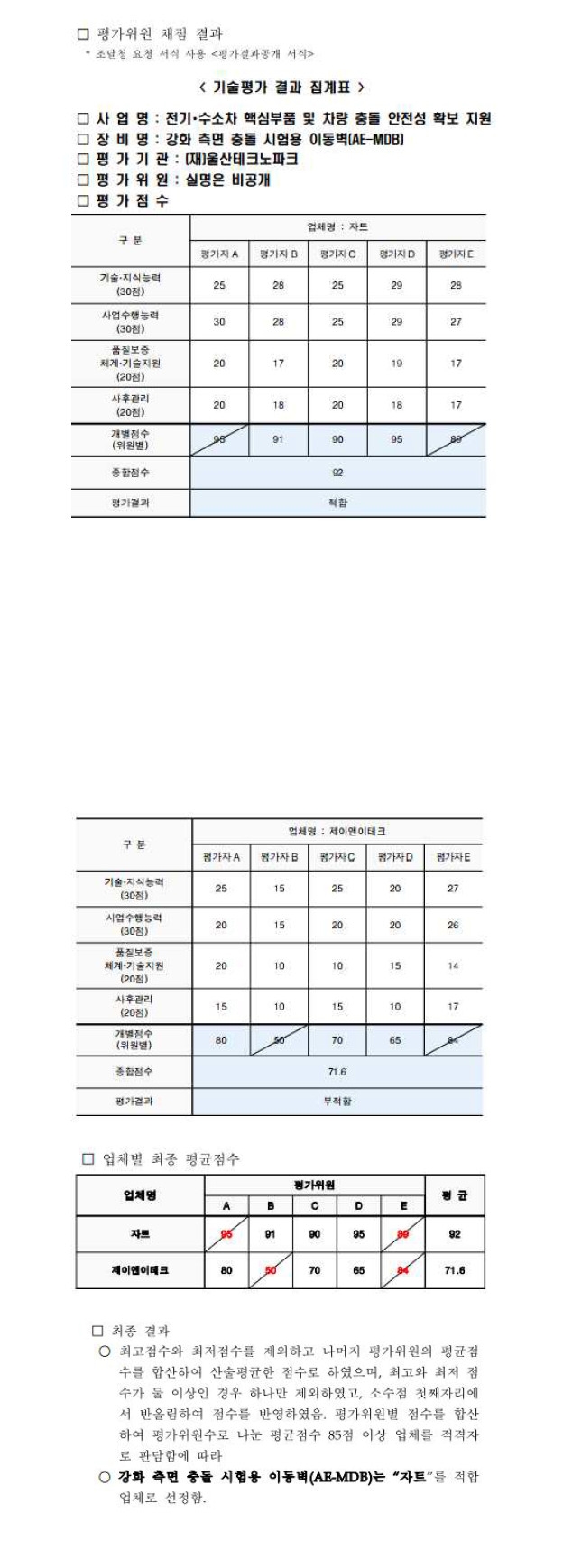 강화측면충돌시험용이동벽(AE-MDB) 제안서 평가결과