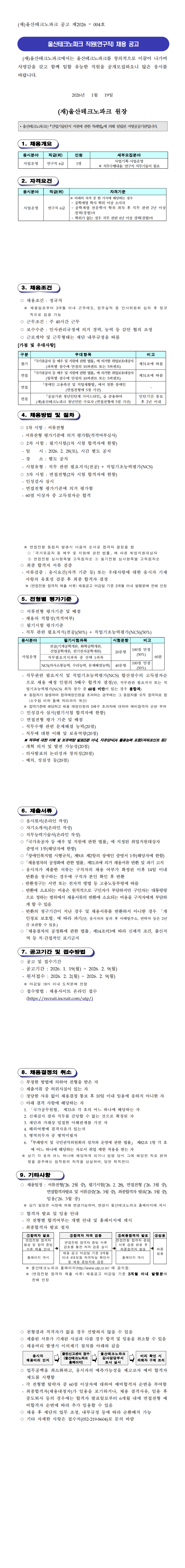 울산테크노파크 직원(연구직) 채용 공고(제2026-004호)